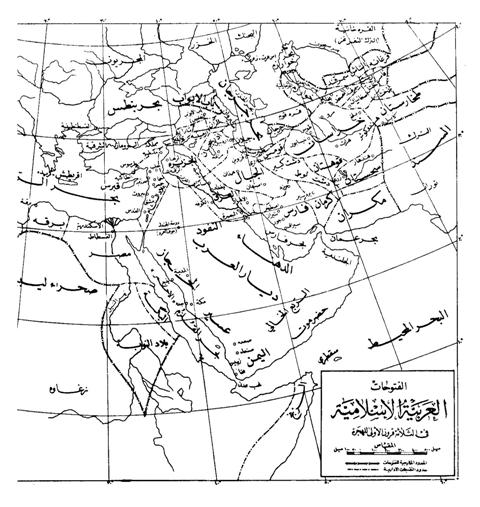 بحر جرجان در نقشهای که کشورگشایی های عربهای مسلمان را در سدهٔ نخست هجری نشان میدهد