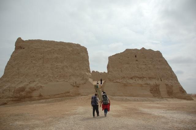 وقتی روی منار بودیم، چند پسر بچهی نوجوان، حدود 10 یا 12 ساله، دورمان جمع میشوند و با چند کلمهی انگلیسی که میدانند، سعی میکنند با ما ارتباط برقرار کنند. به کمک ترکی پدرام و نقشهای که داریم، حالیمان میکنند که در جنوب غربی این شهر باستانی مرو، چند کیلومتر پایینتر از آرامگاه سلطان سنجر ساختمانی است مخروبه به نام کیزکالا (احتمالاً قیزقلعه) که ظاهراً بزرگ و قابل توجه است و دالانی زیرزمینی دارد و دوست دارند ما را به آنجا راهنمایی کنند. ما که هنوز یاد نگرفتهایم به این بچهها میشود اعتماد کرد، اول سعی میکنیم دست به سرشان کنیم، پس بعد از چرخیدن در اطراف مقبرهی خواجه یوسف همدانی، به سمت جنوب محوطه که جویباری روان است و برخی از مردم محلی هم میروند، میرویم. ظاهراً داریم از محوطه دور میشویم و انتظار نداریم چیز جالبی ببینیم.