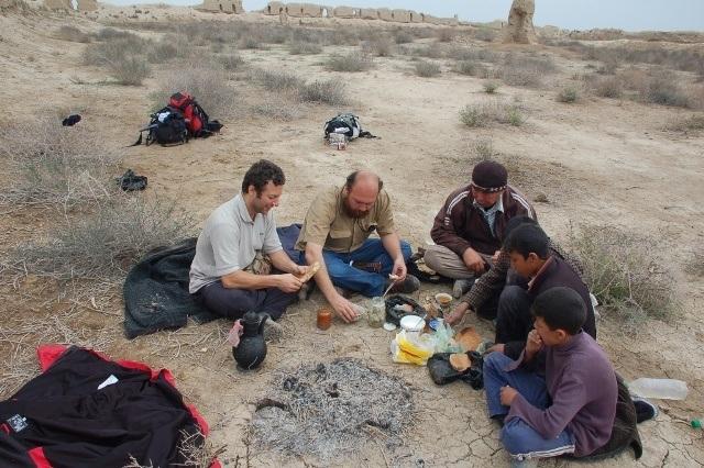 انگار سالهاست که ما همدیگر را میشناسیم و دوباره داریم یکدیگر را میبینیم. صبحانهمان در هوای خنک و در کنار آتش گرم صرف شد. ترکیبی از قارچ کبابیشده و چای سبز که در ابریق دم کشیده بود، و خوراکی از ترکیب سیبزمینی و چربی کوهان شتر و گوشت شتر نمکسودشده ــ که در شیشهای شبیه شیشهی سس مهرام قرارداشت ــ و خوب در کنارهم عمل آورده شده بودند، به همراه نانهای محلی سبزیدار خیلی خوشمزه. مربای خانگی هم داشتند.