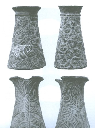 آثار جیرفت حامل فرهنگی بومی است که هیچ نوع نفوذی از غرب و اثری ازآثار بین النهرین و آشوری را در آن نمی بینیم (4). مکتبی که در اوایل حدود 3000 سال قبل از میلاد ساخت این ظروف را آغاز کرد و پس از چند قرن آن را به اوج تکامل خود رساند و سازندگان آنها حتی علیرغم حجم زیاد تولید ، سعی نموده اند تا از تکراری بودن نقش روی آن جلوگیری کنند و بر روی آنها نقوشی آفریده اند که به نظر ژان پرو - باستان شناس فرانسوی - مربوط به عصری است که پیش از نمایان شدن خدایان در طرح های روی ظروف است . موضوع این نقش مایه های تزیینی ، انواع جانوران ، موجودات افسانه ای ، انسان ، گونه های گیاهی و بناها و شهرها می باشد . این ظروف سنگی منقوش از لحاظ سبک به گروه سری قدیم تعلق دارد که میروشجی آنها را اواسط هزاره سوم ق. م تاریخ گذاری نموده و خاستگاه شان را ایران می داند .