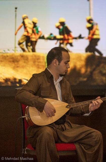 سپس یک فیلم سه دقیقه ای از مصائب و فجایای جنگ عراق و سوریه نمایش داده شد و در ادامه، گروه موسیقی ( شنو ) متشکل از خواننده ی خوش صدا ، آقای ﺭﺍﻓﻊ ﺳﺮﺭﻭﺕ و نیز با نوازندگی ساز توسط فرهاد سلیمانی نواهایی را اجرا نمودند.