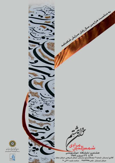 به مناسبت يادبود هزاره جهاني شاهنامه حکیم ابوالقاسم فردوسی، به همت بنیاد فردوسی، نمایشگاه خوشنویسی خوان هشتم در فرهنگسرای ارسباران برگزار میشود. در این نمایشگاه، آثار استاد شمس الدین مرادی نمایش داده میشود. زمان برگزاری نمایشگاه از 23 اسفندماه تا 26 اسفندماه 1389 از ساعت 9 تا 20 خواهد بود. فرهنگسرای ارسباران واقع در «خیابان شریعتی، خیابان جلفا، خیابان ارسباران» است.