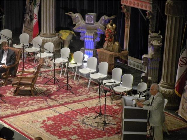در این بزمِ بِشکوه، سرهگویِ پارسی، میرِ اَدبِ ایرانی، دکتر میرجلالالدینِ کزازی با سخنانِ سنجیده و آهنگین خود مشتاقان را مسحور کرده، ستیغِ سخنِ استاد بر شناختِ ایرانی از اَنیرانی بر مدارِ معیارِ شاهنامه بود، وی سنجهای باریکتر و ژرفتر برایِ بازشناسیِ هویتِ ایرانی در این بِزَنگاهِ از خود بیگانگی، جُز شاهنامه نمیشناسد، او در این وانفسایِ روزگارِ رسانه و از خود بیگانگی، جوانِ ایرانی را به بازشناسیِ هویتِ خود با شاهنامهیِ فردوسی که ناخودآگاهِ تبارِ ایرانی را پی ریخته فراخواند و شاهنامه را سرگذشت و سرنوشتِ توأمان ایران و ایرانی شمرد، وی شرمساری در برابرِ نیاکان را دژمترین عذاب برایِ ایرانیانِ امروز دانست که آن بیمهری در برابرِ شاهنامه و ناشناختنِ آن است.